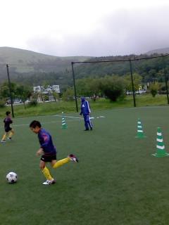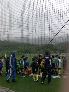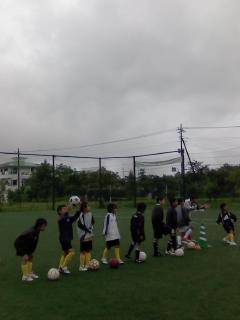 雨の中芝で練習中